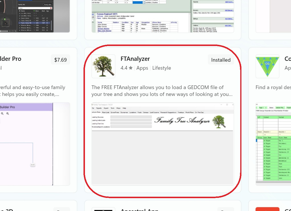 I wanted to share with you something amazing I’ve run across. I was actually looking for a different program that was recommended (Gramps) and realized the learning curve was above my technological aptitude. But I’d gotten excited at the prospect of running reports and automating a lot of what I still do manually (I’m a late adopter!) so I browsed the Microsoft Store and found this…